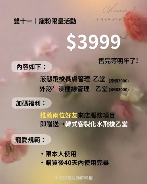 雙十一|寵粉限量活動|彰化做臉|和美鎮做臉
